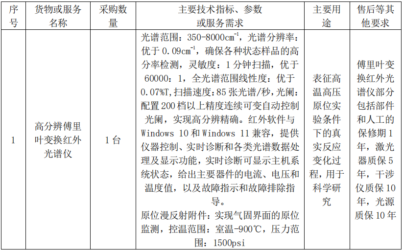 中國科學(xué)院山西煤炭化學(xué)研究所“高分辨傅里葉變換紅外光譜儀”采購公告