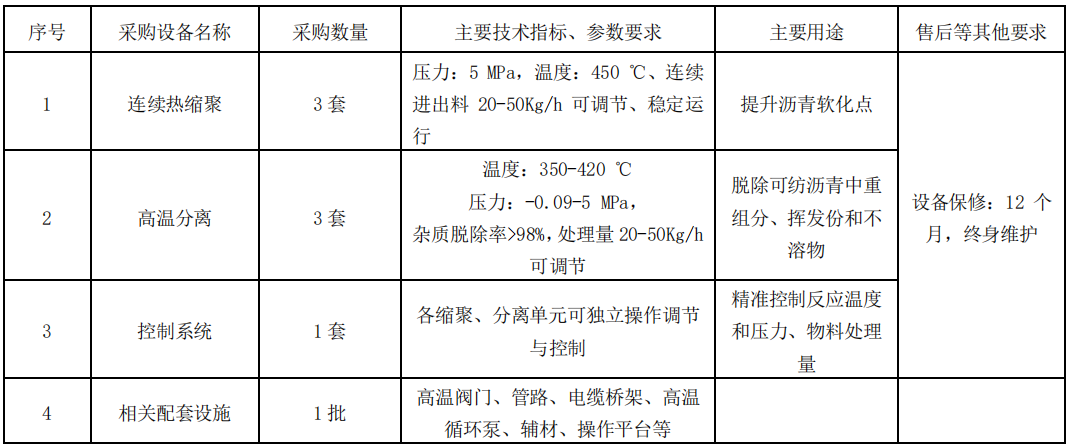 中國科學院山西煤炭化學研究所“連續梯度熱縮聚、高溫熱分離成套設備”采購項目采購公告
