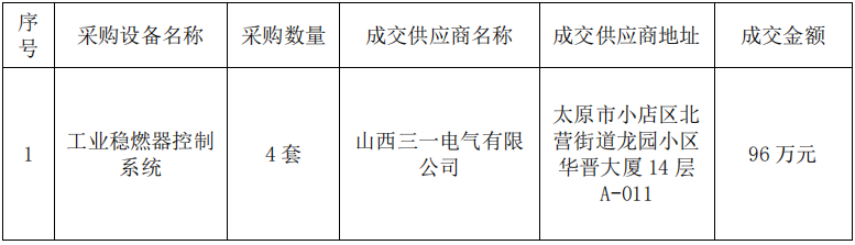 中國科學院山西煤炭化學研究所“工業穩燃器控制系統”采購項目采購結果的公告