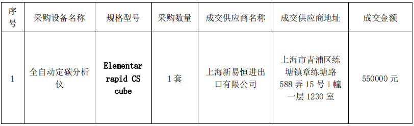 關于山西煤炭化學研究所“全自動定碳分析儀”采購項目采購結果的公告