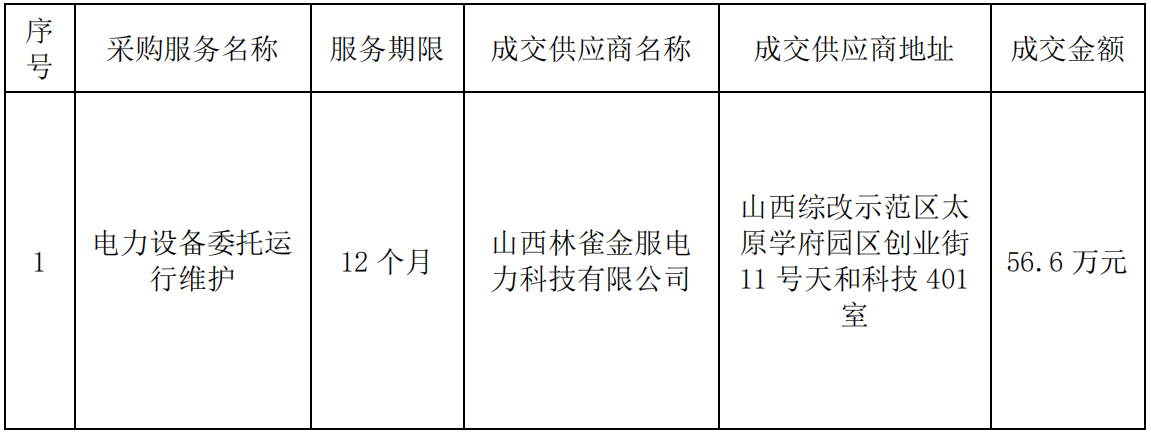 中國科學(xué)院山西煤炭化學(xué)研究所電力設(shè)備委托運行維護(hù)詢比采購項目采購結(jié)果公告