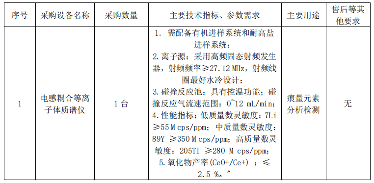 中國科學院山西煤炭化學研究所“電感耦合等離子體質譜儀”詢比采購項目采購公告