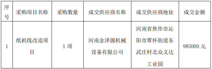 山西煤炭化學(xué)研究所“紙機(jī)線改造”詢比采購項目采購結(jié)果公告