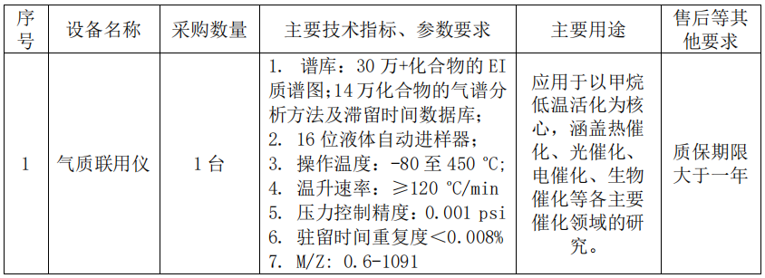 山西煤炭化學研究所“氣質聯用儀”詢比采購公告