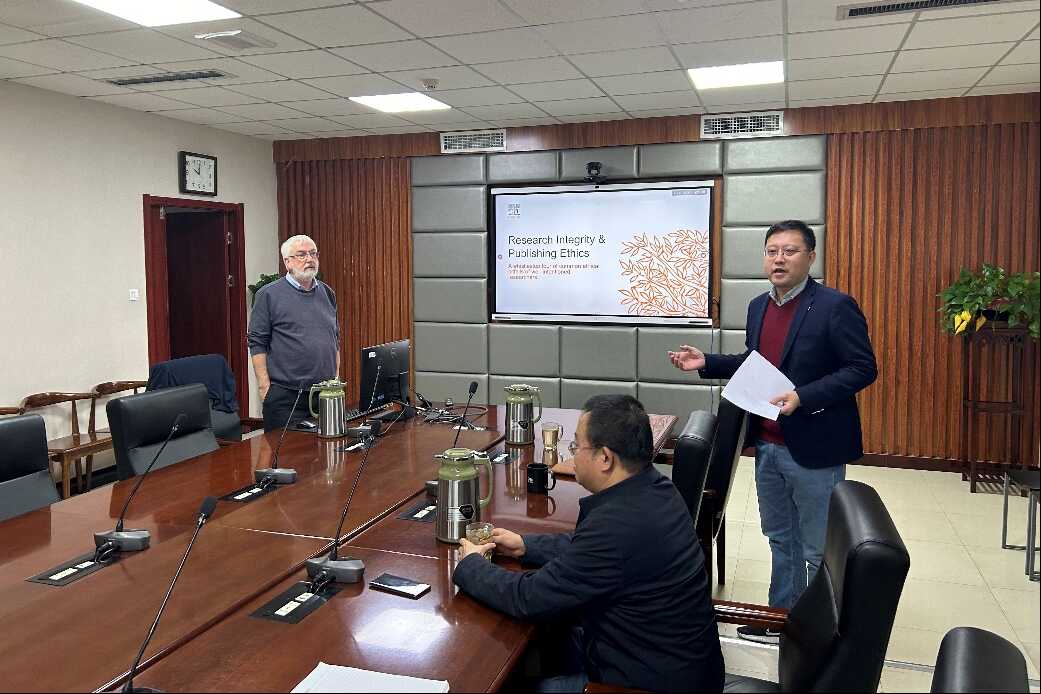 11月20日,William Nimmo從期刊主編的角度與科研人員和期刊出版人員進行了座談,話題為誠信科研與出版倫理。William Nimmo重點講述了掠奪性期刊與論文工廠,一稿多投,不規范引用,文章署名,利益沖突幾個關鍵問題,為科研人員的規范投稿提供了指導。另外,座談會中還就人工智能AI在科研活動中的合理使用、期刊的管理與發展等問題進行了深入的討論。