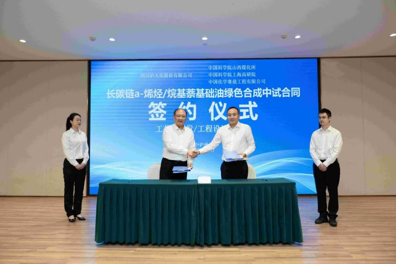 4月17日,山西煤化所與四川瀘天化股份有限公司舉行“生物質基長碳鏈α-烯烴合成”中試項目簽約儀式,聯合開展生物質基高端化學品技術攻關。山西煤化所所長房倚天出席活動并致辭。