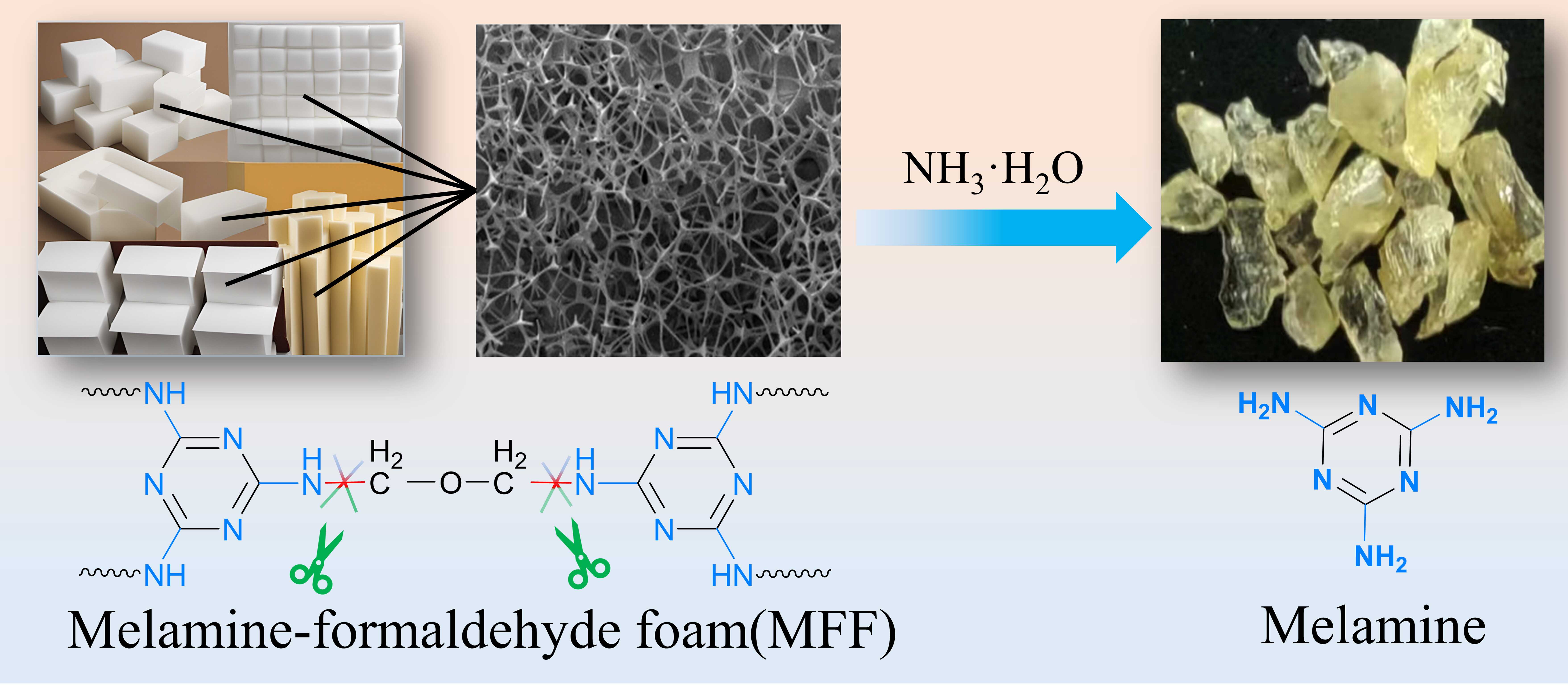 三聚氰胺甲醛樹脂(Melamine formaldehyde resin),簡稱密胺樹脂,是由三聚氰胺和甲醛縮合聚合形成的一種熱固性樹脂。熱固性密胺樹脂具有優異的剛性、穩定性、阻燃性等性質,廣泛應用于交通工具制造、餐具、家居裝修等領域,但密胺樹脂的優異性能同時也造成了密胺樹脂廢棄物難以被高效回收再利用。據調查2023年我國密胺樹脂產量約為400萬噸,且該數字還在逐年增大,這意味著未來將產生大量的密胺樹脂廢棄物,若不對其進行有效回收,必將對生態環境健康造成嚴重威脅。