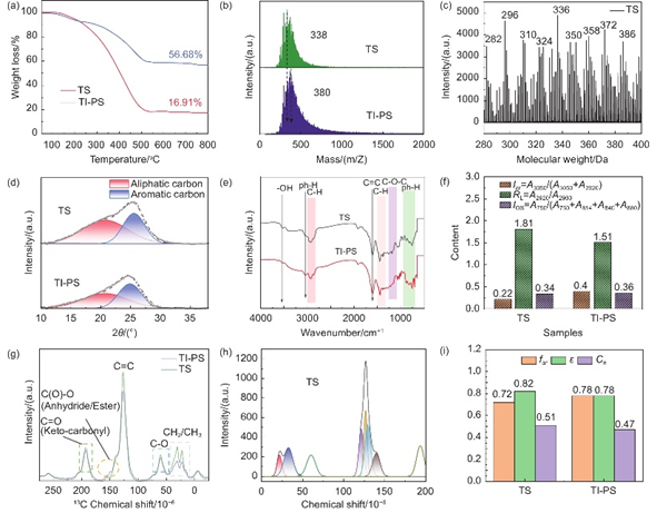 在350 ℃的空氣氧化過(guò)程中,TS由于脂肪側(cè)鏈豐富,更容易與氧氣結(jié)合,形成大量交聯(lián)結(jié)構(gòu)(如C(O)-O鍵),就像在分子間搭起“橋梁”,防止炭化時(shí)結(jié)構(gòu)有序堆疊。而TI-PS由于結(jié)構(gòu)穩(wěn)定,氧化程度較低,炭化后更容易形成類似石墨的有序結(jié)構(gòu),不利于鈉離子存儲(chǔ)。