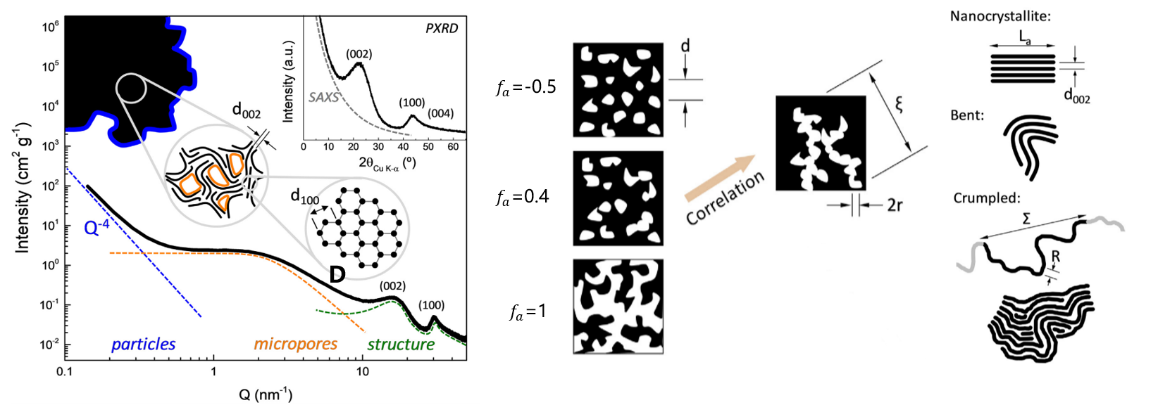 近日,中國科學院山西煤炭化學研究所蘇方遠團隊(709)在硬炭材料構效關系研究方面取得重要進展?;?0余種商業硬炭的小角X射線散射(SAXS)提出分形維度作為硬炭結構無序性的描述符,反映了硬炭“紙牌屋”中紙牌的褶皺程度,并通過數據驅動方法建立了預測這一參數的模型,相關結果以《Fractal dimension revealed from SAXS as a descriptor of structural disorder in hard carbon anodes of sodium ion battery》為題發表于Chinese Chemical Letters期刊。數據集作為數據論文(Data Paper)以題為《A dataset on the structure and electrochemical performance of hard carbon as anodes for sodium-ion batteries》被New Carbon Materials期刊接收,并公開在Science Data Bank。同時該成果以“硬炭的電池性能構效關系認知”為主題,受邀參加第一屆寧德時代(CATL)零碳科技解決方案創新大獎賽并獲優秀獎。