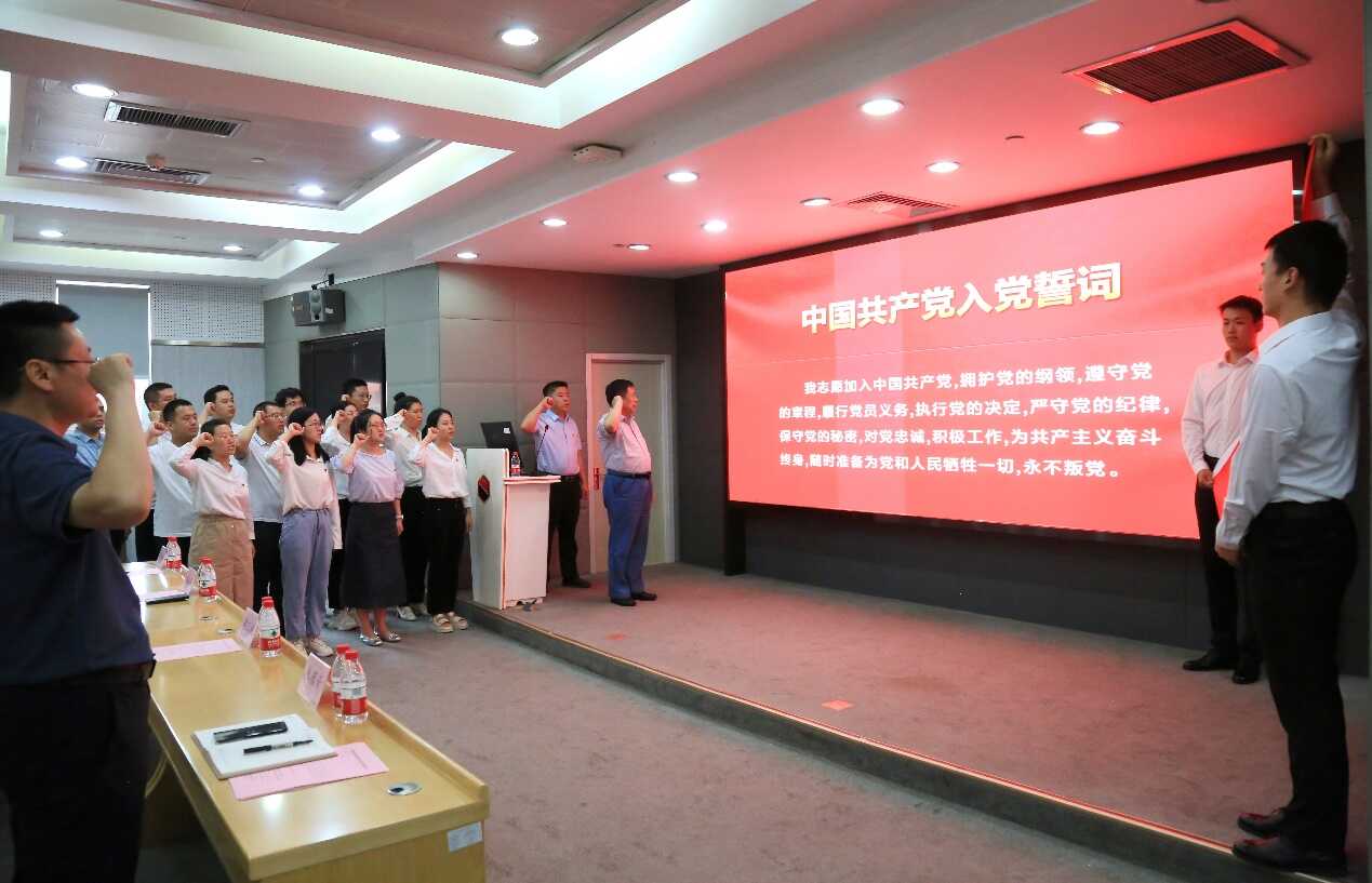 面向鮮紅的黨旗,李晶平帶領大家緊握右拳,莊嚴宣誓。錚錚誓言,拳拳初心。一次承諾,一生踐行。