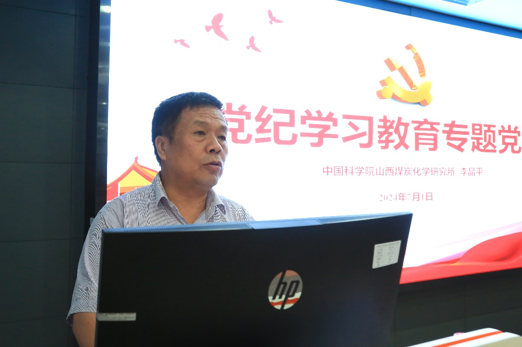 李晶平講了黨紀學習教育專題黨課。他介紹了“三大紀律?六項注意”和“加強紀律性?革命無不勝”兩個黨史中標志性的紀律口號的產(chǎn)生、演變及意義,傳達學習了新時代習近平總書記對黨的紀律建設的重要論述,重申了本次黨紀學習教育的背景和意義,對研究所黨紀學習教育提出了要求。