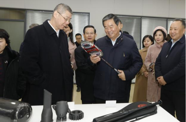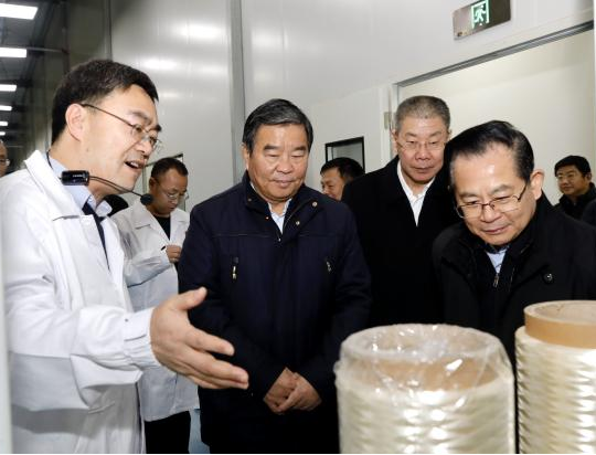 在調研過程中,何報翔一行首先參觀了民革山西省直屬煤化所總支黨員之家,觀看了總支宣傳短片。隨后,他們前往科技成果展覽區,詳細了解各產品介紹,并實地考察了高性能碳纖維研發中心生產線。何報翔對取得的成果給予了高度評價,稱贊其“成果豐碩,含金量極高”。