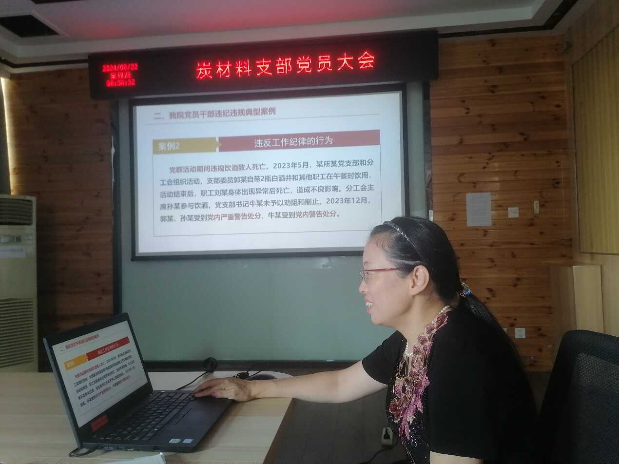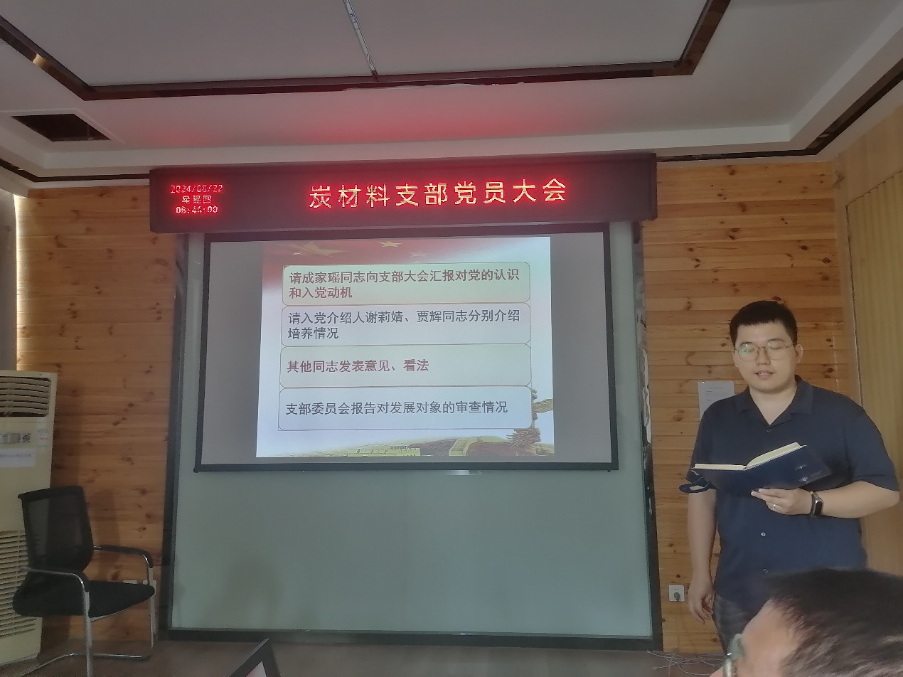 8月22日上午,炭材料黨支部召開本年度第四次黨員大會,在所黨員參加。會議黨支部書記宋燕主持。